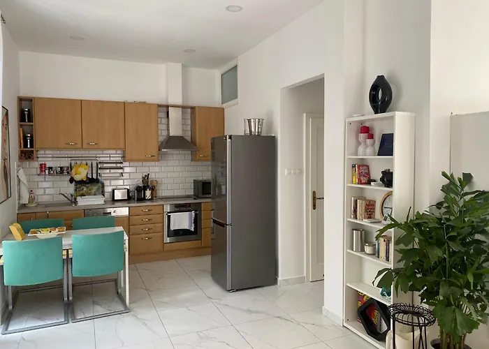 The 50 m² Superb Studio With 40 Sqm Terrace In The Greens Of Buda City Centre Budapest is located 2.5 km from the Iharos Sándor Athletic Center of Margaret Island and about a 20-minute walk from the subterranean Hospital in the Rock Nuclear Bunker Museum. This 1-bedroom apartment also has a patio overlooking the street.
